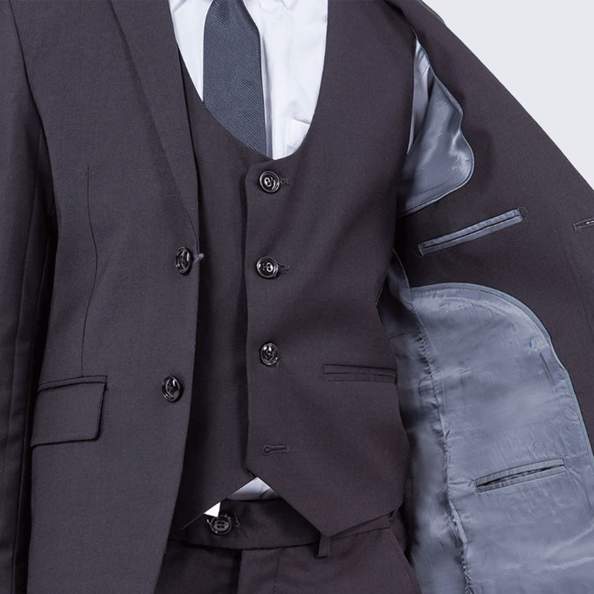 Boys Dark Grey Slim Fit 5-Piece Suit Set – Wedding & Ring Bearer