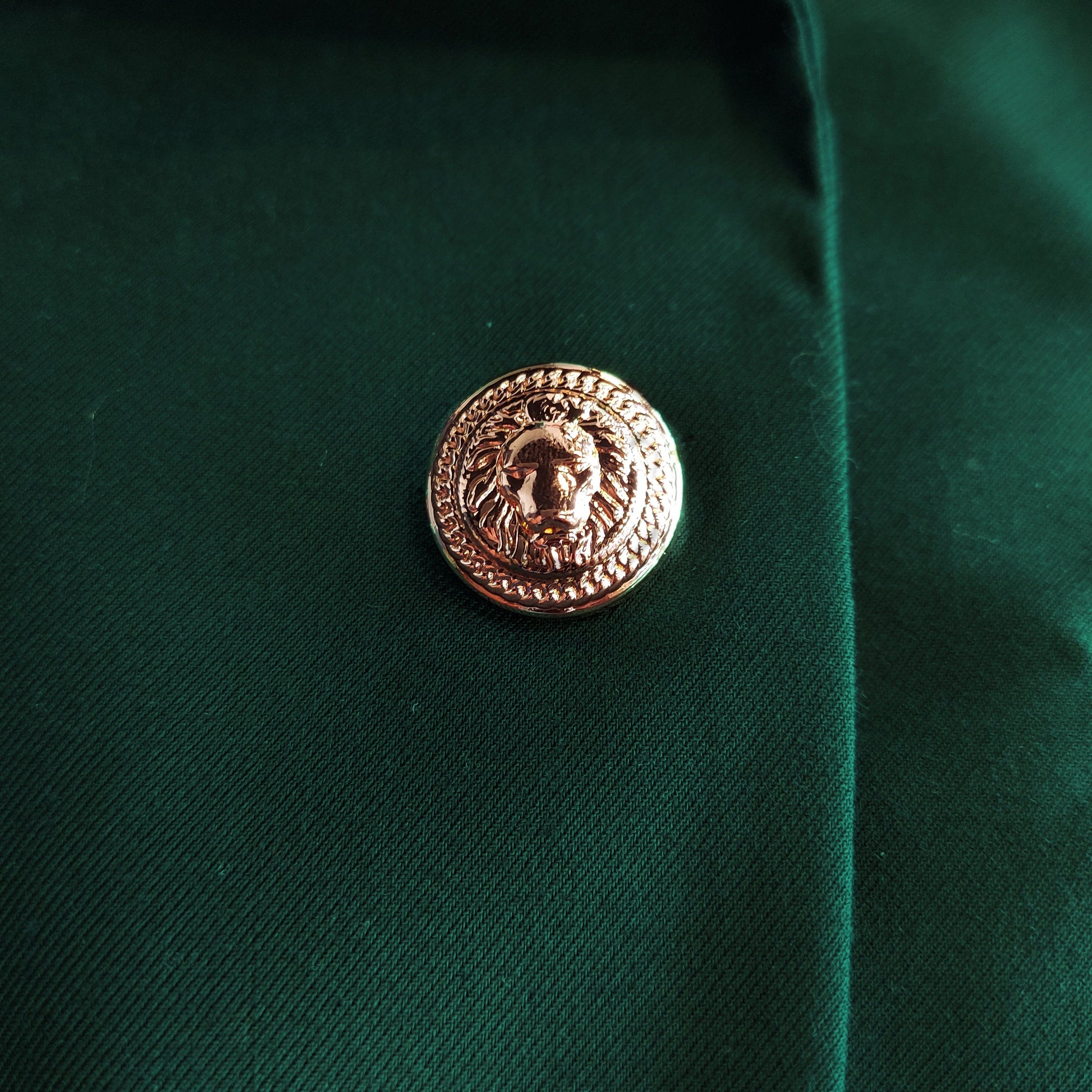 Mens green skinny fit three piece suit with peak lapel. This slim cut suit is made of a luxurious rayon viscose/ dacron blend fabric that looks and feels like super 100 wool. Coat has one gold textured lion button front closure. Side vents. Jacket has gold textured lion button details, and comes with a double breasted vest. Jacket pockets are usable but come sewn shut. Gently cut open to use. Tetron silk lining. Very high quality and well constructed. Comes with plain-front tapered trousers with narrow leg opening. Pants are a six-inch drop. Subtract six inches from your jacket size to determine your pant waist size. Meaning, if the coat size is a 40R the pants waist will be a 34R. Pants are lined to the knee. Pants come unfinished at the bottom so that you can hem at your proper length. Comes with a matching four button fullback vest. Also, a bonus pocket square included. This suit is ideal for weddings, proms, and other formal events. Dry clean only. Please note, this is a skinny fit suit. It has a tighter cut, especially in the pants. If you are in between sizes, we suggests you go with the larger size.